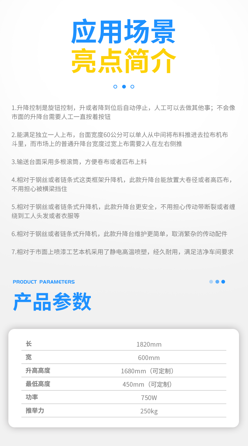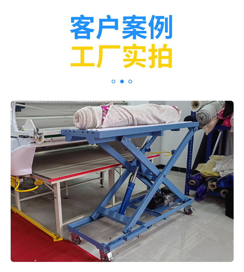 優勢:相對于市場上的升降臺,此款升降臺由拉布機廠家設計更適合配套拉布機使用